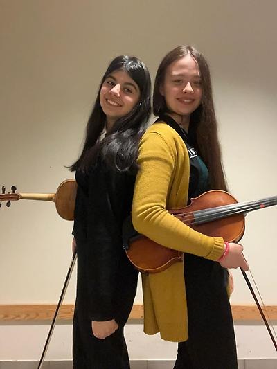 Hedvig Paulin och Roshana Arshadi har båda spelat altfiol sedan de var 5 år gamla. Nu är de 14 år och spelar flera dagar i veckan. Dels tar de individuella lektioner men spelar även i orkester.
